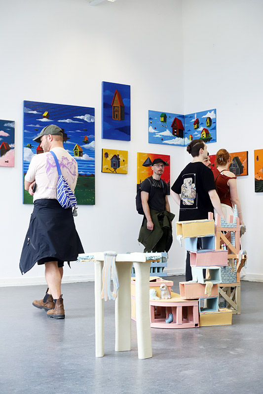 What a weekend: thousands of visitors attended the annual exhibition ‘Einblick/Ausblick’ at the Muthesius Academy of Fine Arts in Kiel. They were able to gain unique insights in studios and workshops: in the old building on Legienstraße, in the rooms at Knooper Weg 75, in the workshop tower, in the spce | Muthesius and in the Gallery Cubeplus, more than 600 students showed the art and design they had created during the academic year.